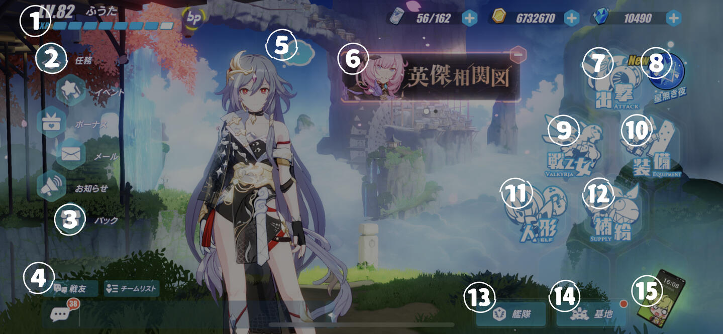 ⑥イベントバナー⑦出撃